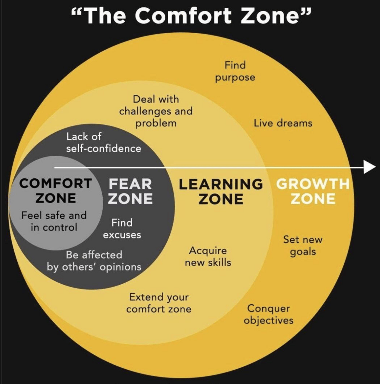 1/ Comfort zone - is where we feel in control and it’s our safe haven.