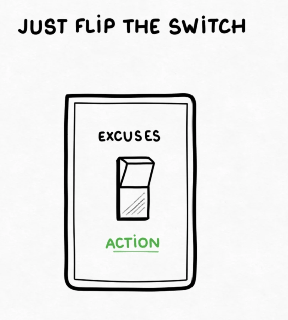 Excuses feel safe, but they keep you stuck. Action creates momentum, clarity, and confidence, even if it’s messy at first. Every small step beats the perfect plan you never start.